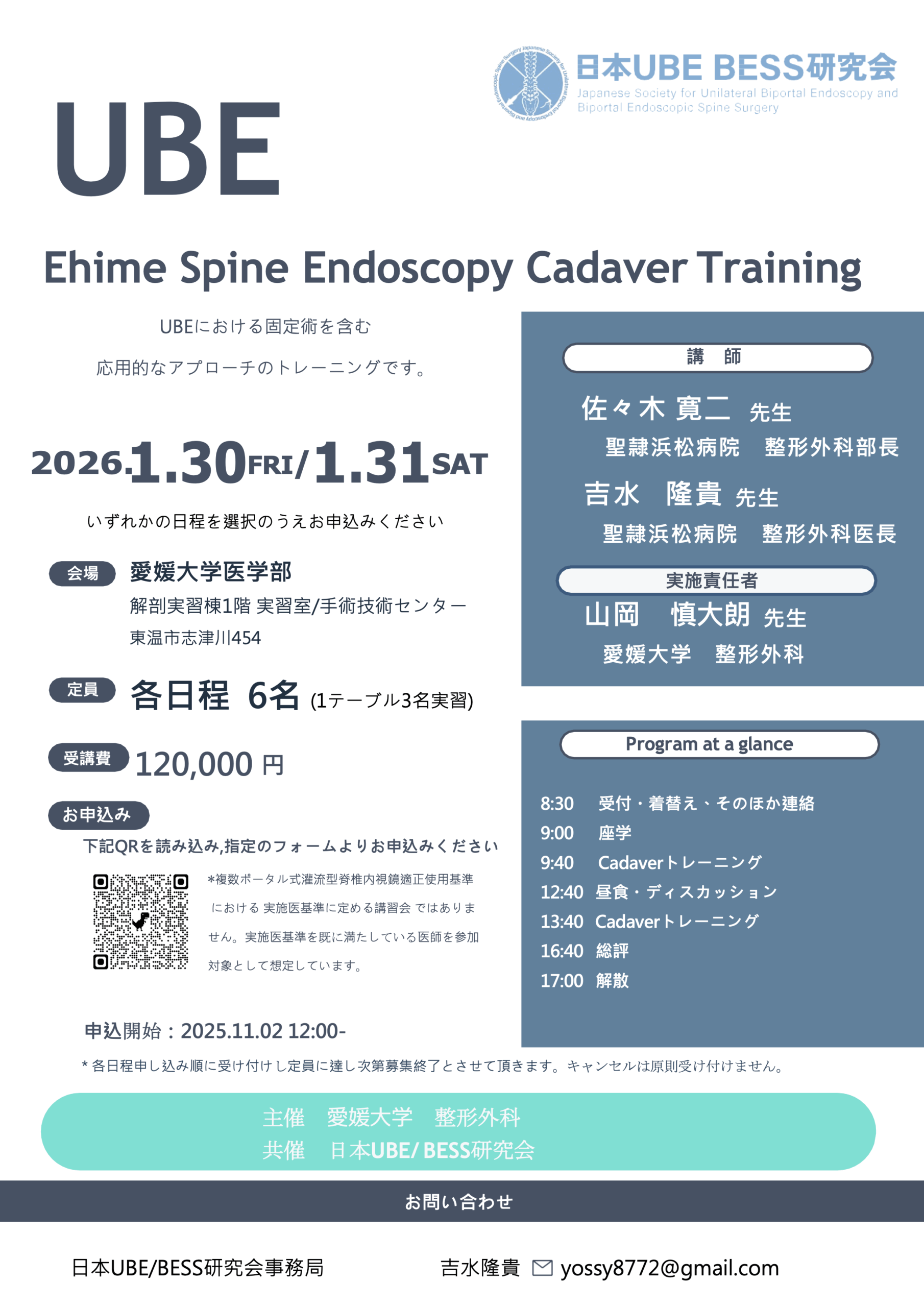 UBE Ehime Spine Endoscopy Cadaver Trainingを開催いたします。
